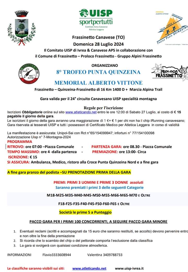 8° TROFEO PUNTA QUINZEINA – MEMORIAL ALBERTO VITTONE”