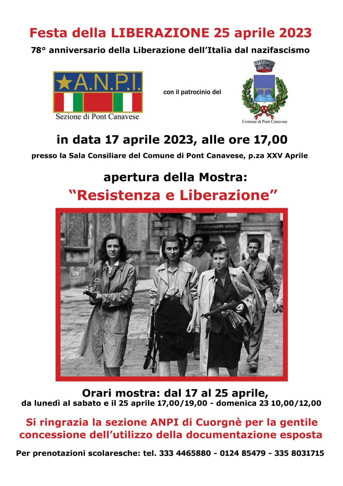 La sezione ANPI di Pont Canavese in occasione del 25 aprile presenta la mostra "Resistenza e Liberazione" presso la sala Consiliare del Comune di Pont Canavese.