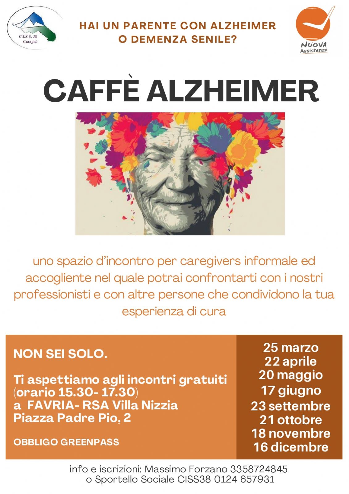 uno spazio d’incontro per caregivers informale ed accogliente nel quale potrai confrontarti con i nostri professionisti e con altre persone che condividono la tua esperienza di cura