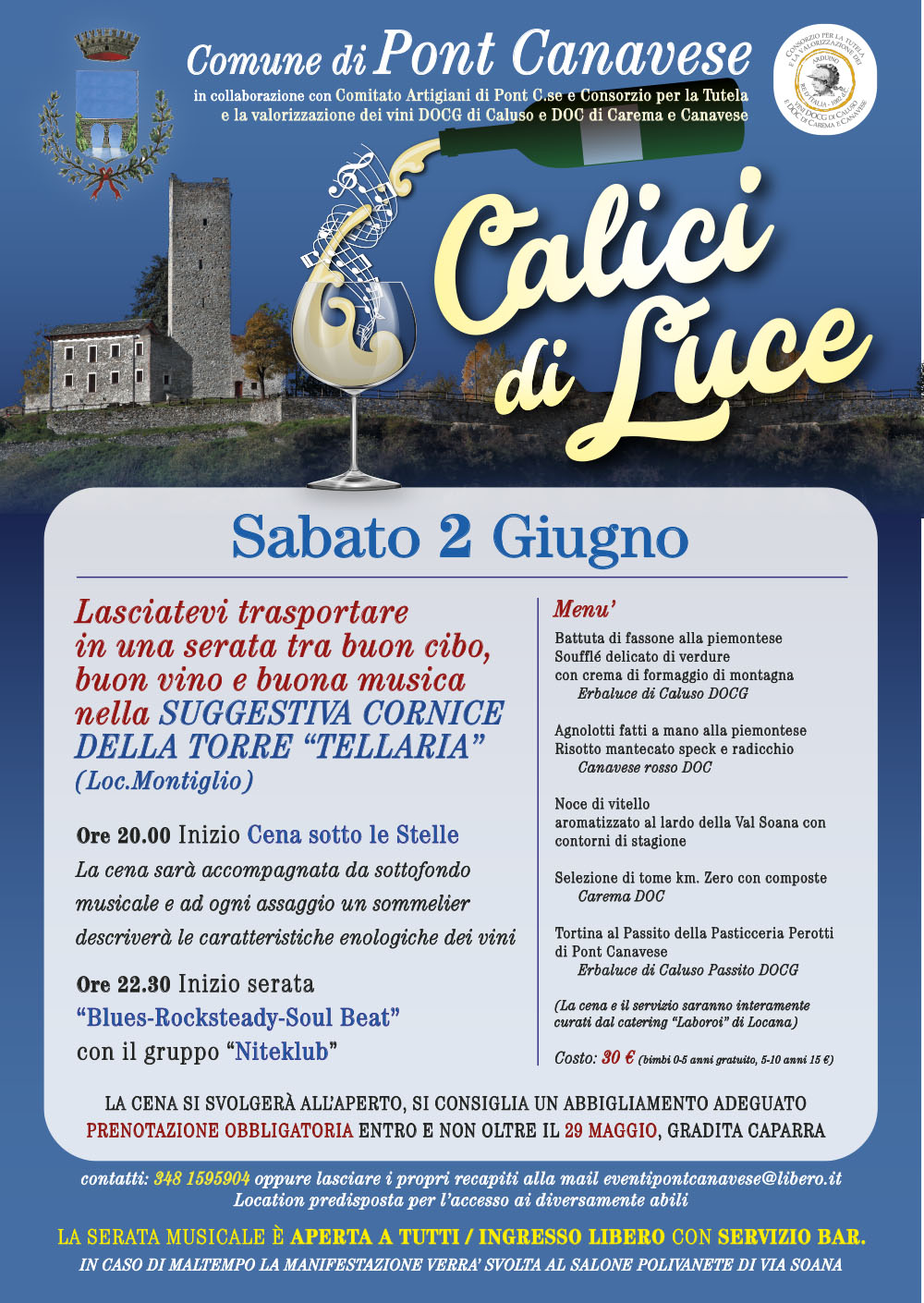 Lasciatevi trasportare in una serata tra buon cibo, buon vino e buona musica nella suggestiva cornice della Torre Tellaria.