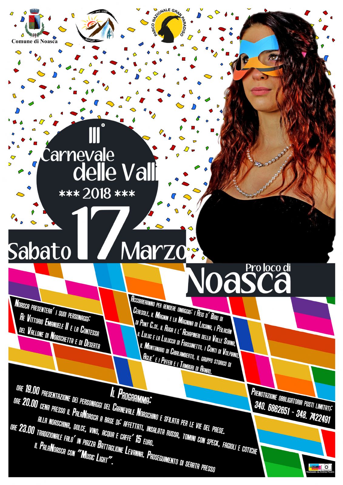 III edizione del Carnevale delle Valli! La festa conclusiva dei Carnevali delle valli Orco e Soana, l'occasione per trascorrere uniti e in compagnia, una bella serata ricca di valori e tradizioni. Noasca presenterà i suoi personaggi: Re Vittorio Emanuele II e la Contessa del Vallone di Noaschetta e di Deserta. Accorreranno per rendere loro omaggio i personaggi di Ceresole Reale con l'Associazione "Reis d' Biru", il Magnin e la Magnina di Locana, il Peilacan e le damigelle di Pont Canavese, il Ruga e l'Achapineri della Valle Soana, il Luluc e la Lulucca di Frassinetto, i Conti di Volpiano, i personaggi di Chialamberto, il Gruppo storico di Agliè e i "Pifferi e Tamburi di Arnad".