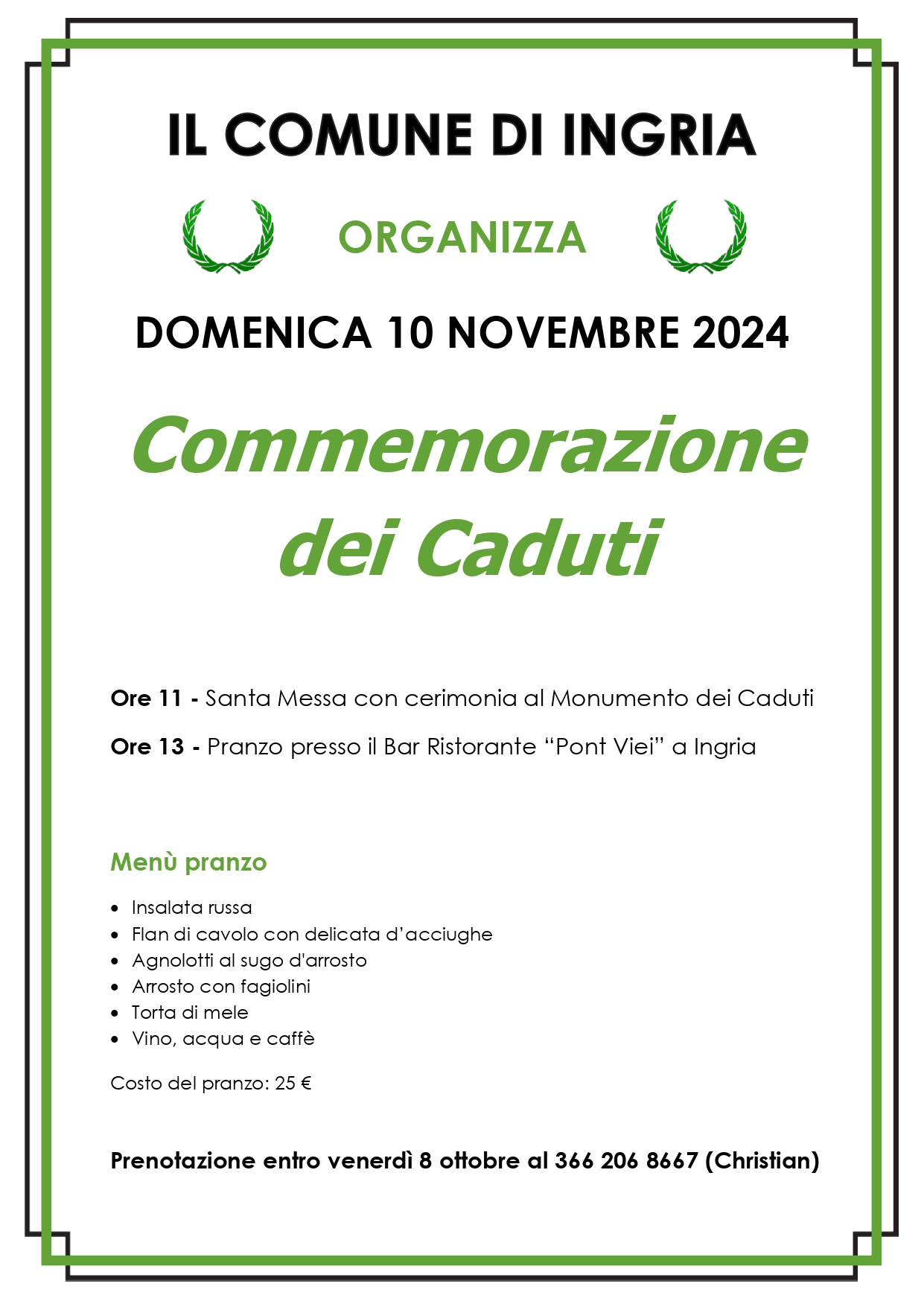 | Organizzazione | Comune e Pro Loco di Ingria |