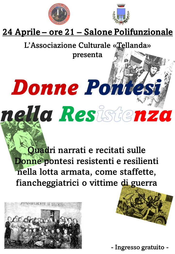 In occasione della ricorrenza del 25 Aprile, l'Associazione Culturale Tellanda presenta alle re 21:00 del 24.04.2023 presso il salone polivalente "Donne Pontesi nella Resistenza".