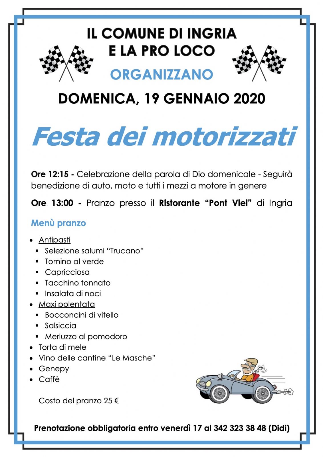 Il Comune di Ingria e la Pro Loco di Ingria organizzano la consueta "Festa dei motorizzati" con benedizione dei mezzi e pranzo presso il "Pont Viei"