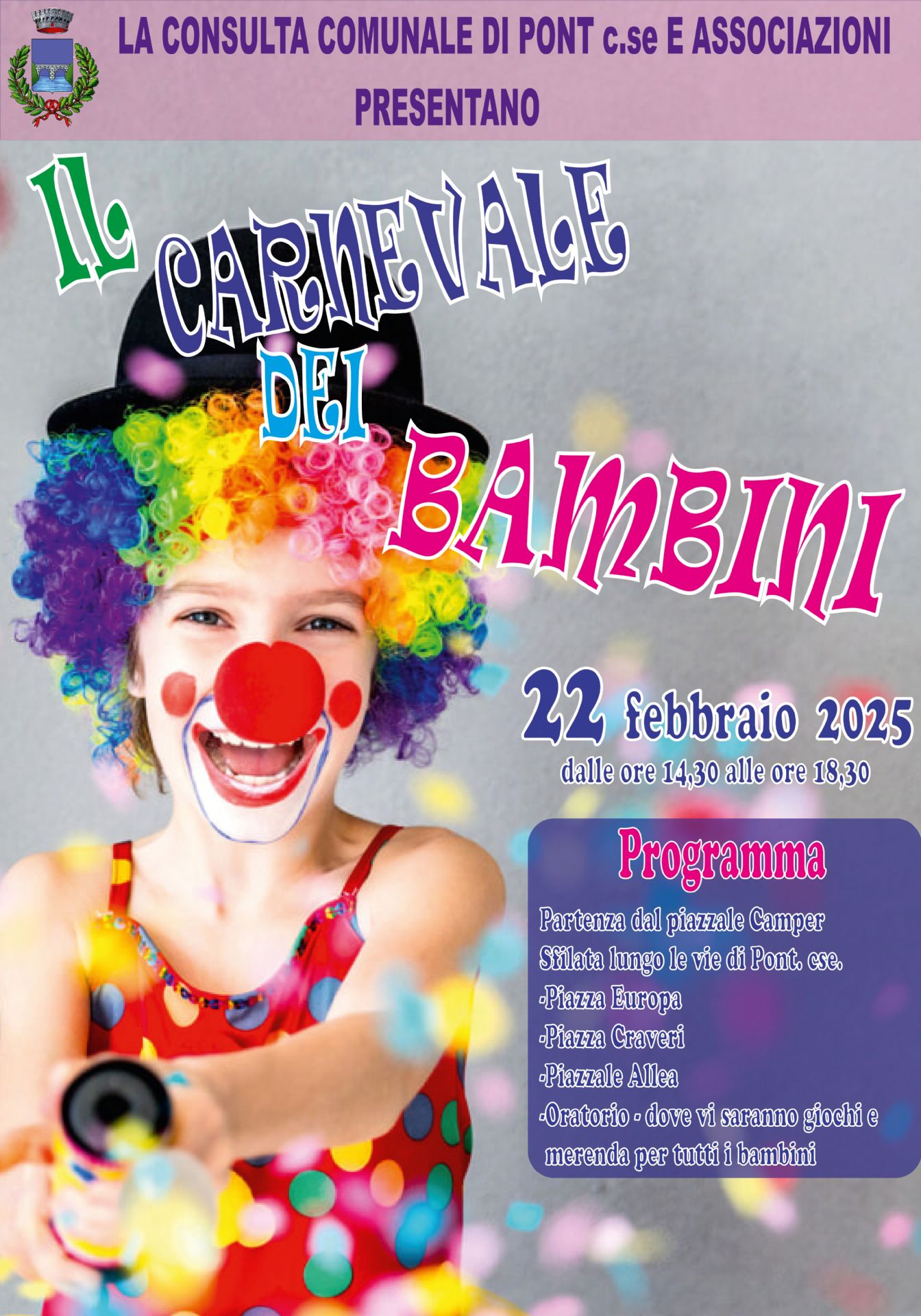 La Consulta Comunale di Pont Canavese e le Associazioni, con il patrocinio del Comune di Pont Canavese presentano "Il Carnevale dei Bambini".