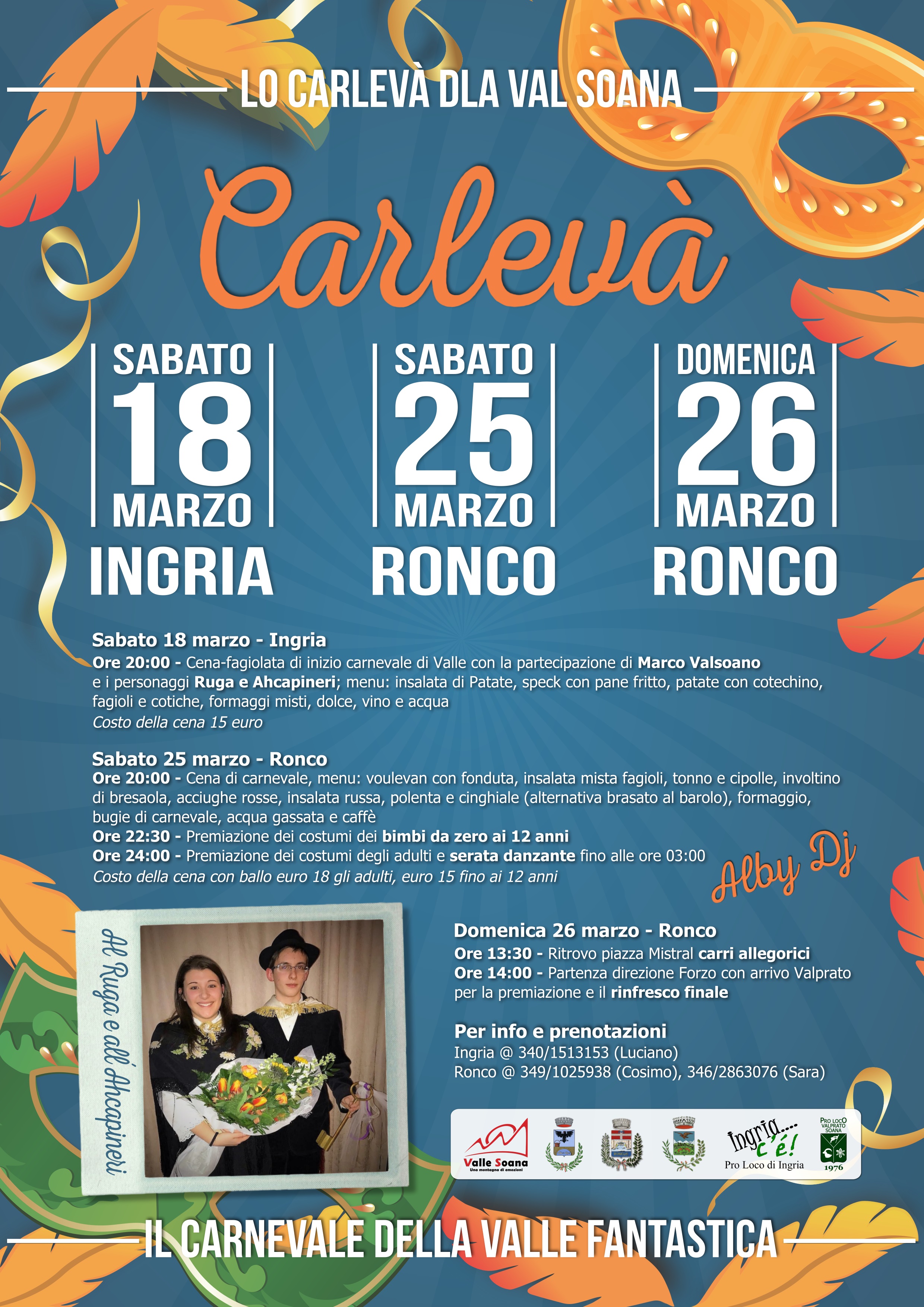 Sabato 18 marzo vi aspettiamo nel salone della Pro Loco con la Cena-fagiolata di inizio carnevale di Valle a Ingria con la partecipazione di Marco Valsoano e i personaggi Ruga e Ahcapineri, con il seguente menu a 15 euro: