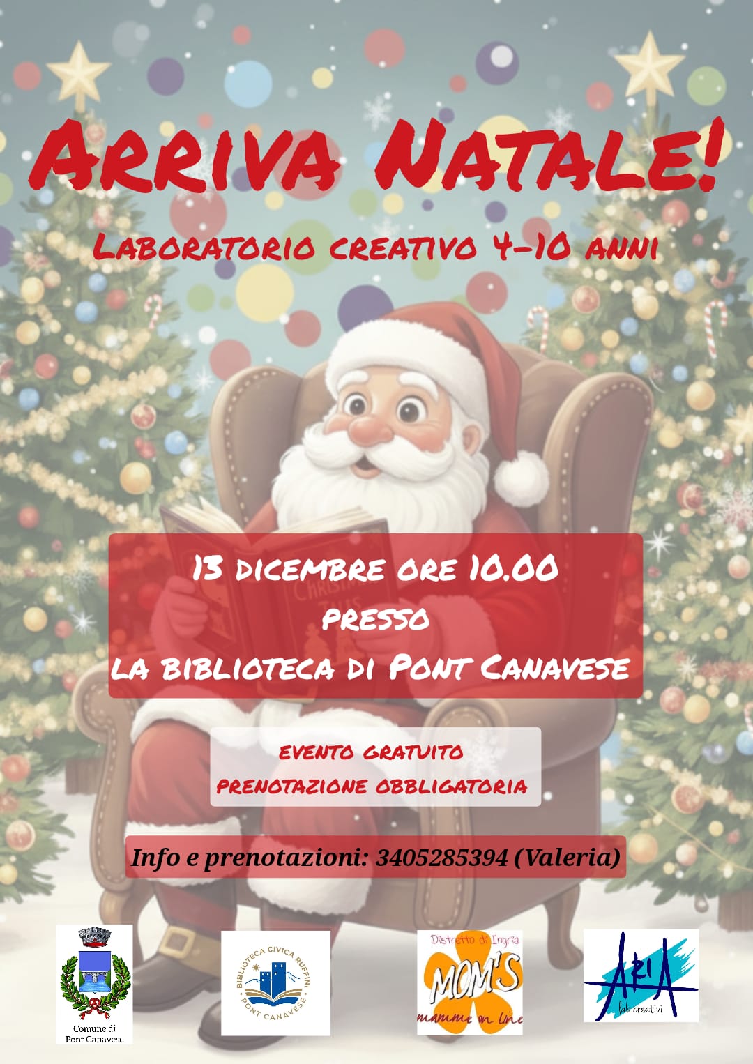 Laboratorio creativo per bambini dai 4 ai 10 anni, sabato 13 dicembre 2025 ore 10:00, presso la Biblioteca di Pont Canavese.