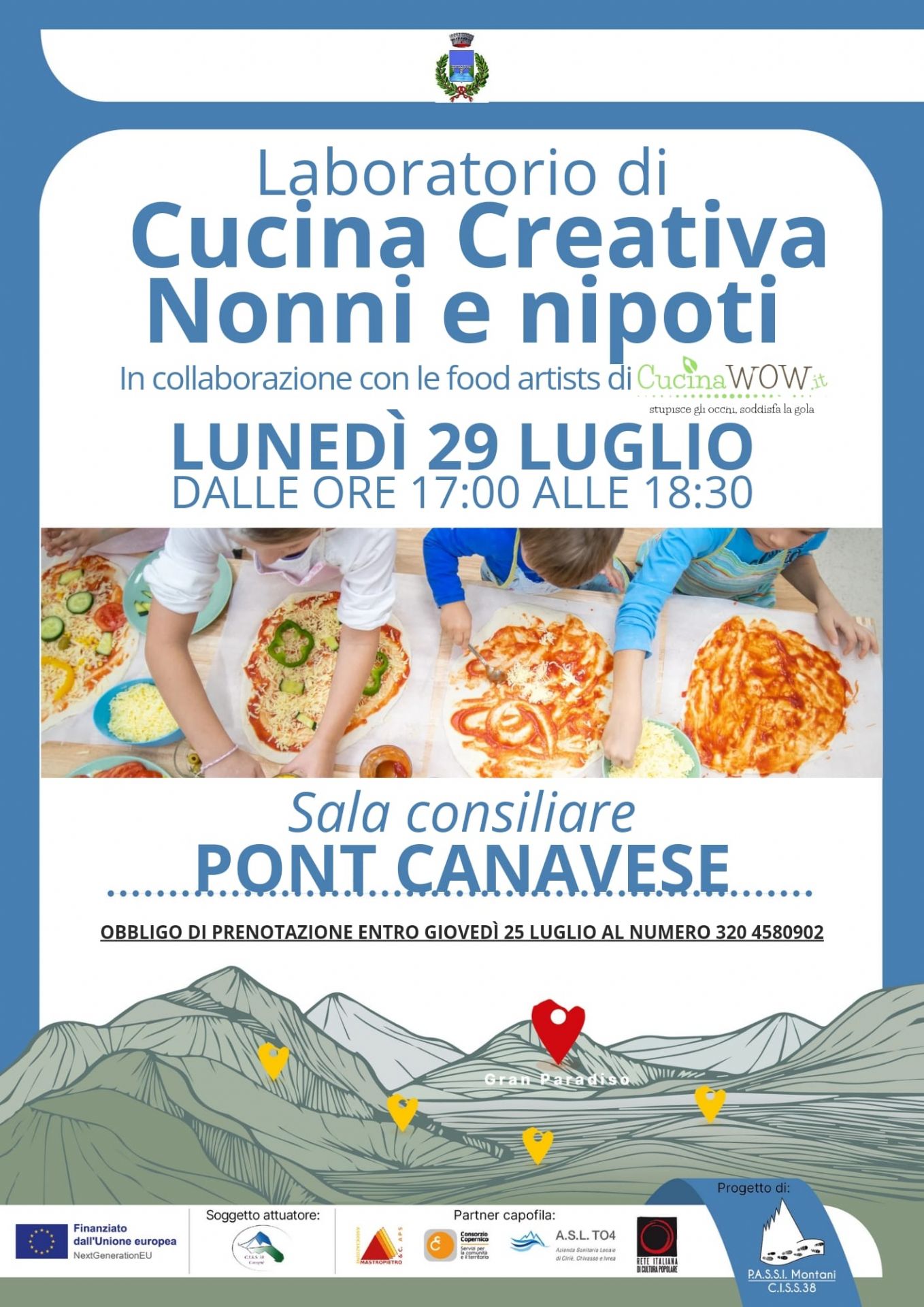 Laboratorio di cucina creativa nonni e nipoti in collaborazione con le food artist di "CucinaWOW.it" lunedì 29 luglio dalle ore 17.00 alle ore 18.30 presso la Sala Consiliare del Comune.