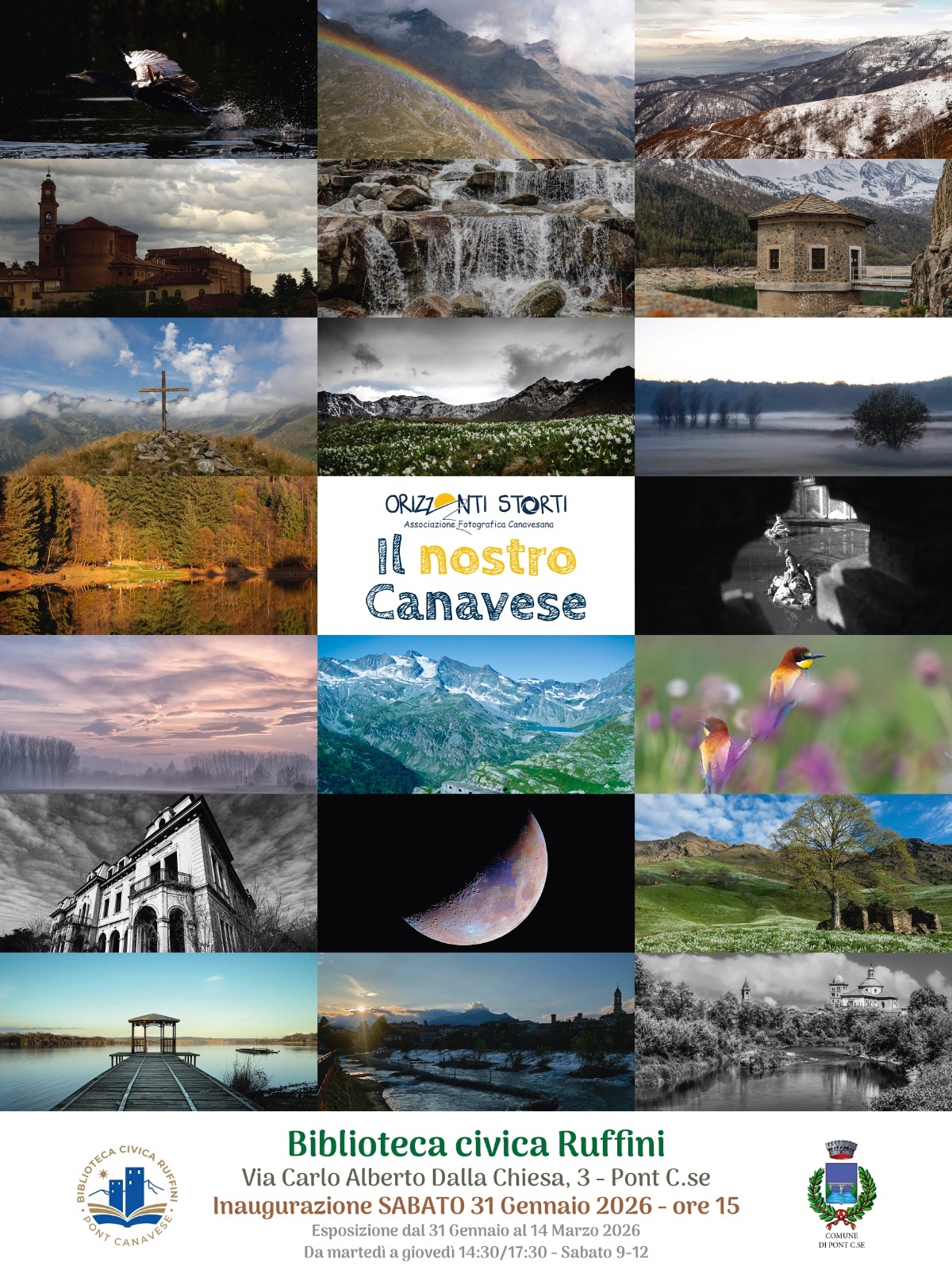 Sabato 31 gennaio 2026 alle ore 15.00, presso la Biblioteca Civica Ruffini di Pont Canavese, verrà inaugurata la mostra fotografica "Il nostro Canavese", curata dall’Associazione Fotografica Canavesana “Orizzonti Storti”.
