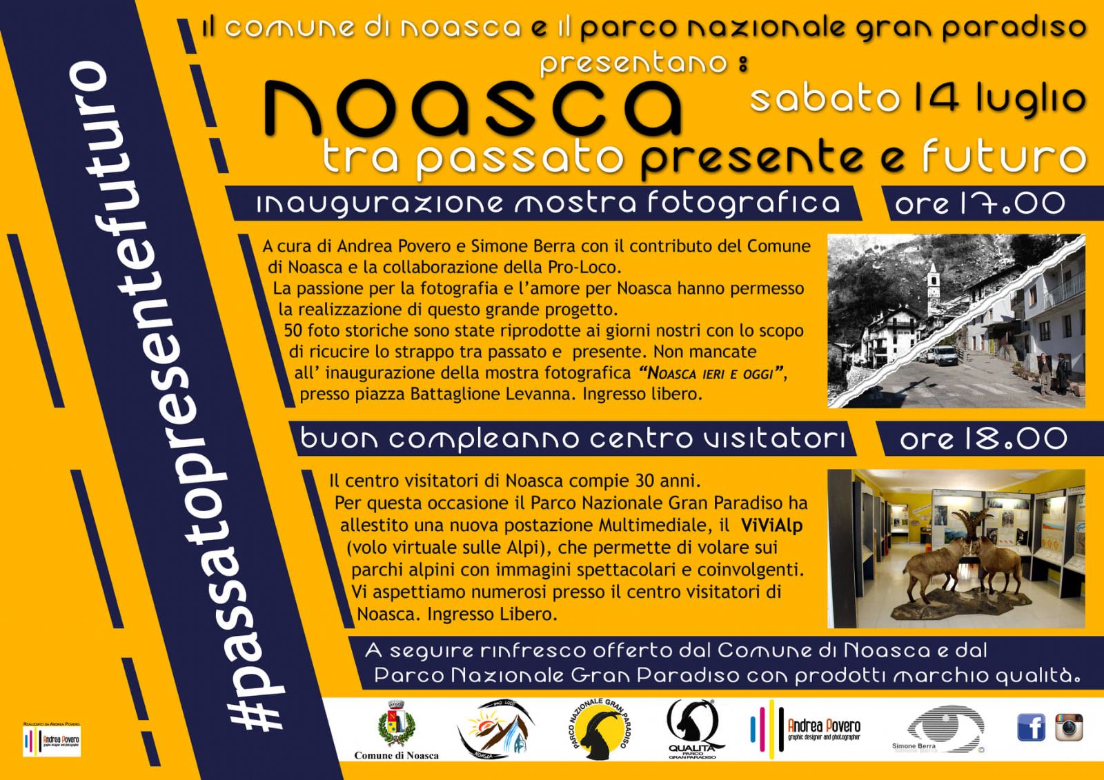 Ore 17.00: il Comune di Noasca inaugura la mostra fotografica "Noasca Ieri e Oggi" curata da Povero Andrea e Berra Simone, presso la Piazza Battaglione Levanna
