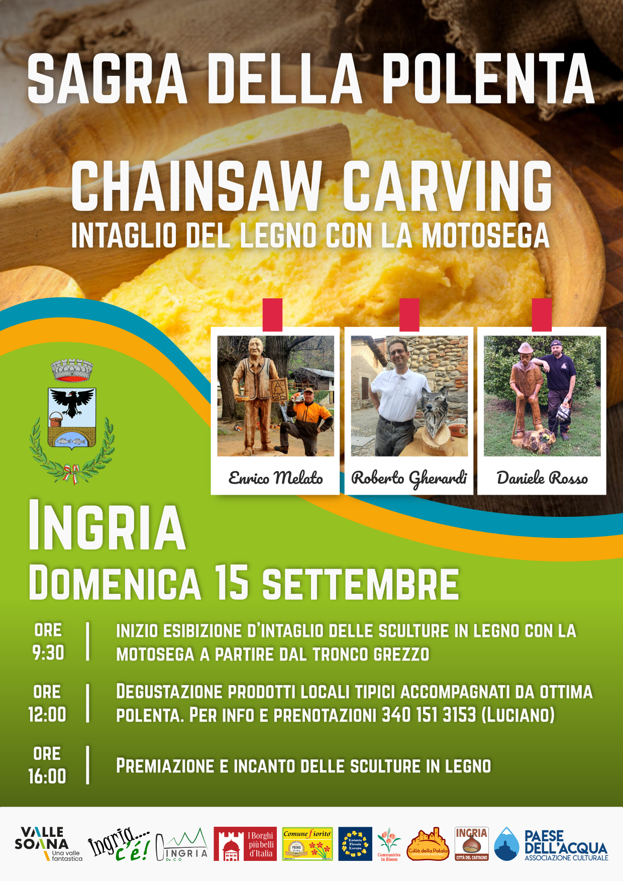 ✅ Classica sagra della polenta settembrina organizzata dalla Pro Loco di Ingria con esibizione di intaglio di sculture in legno con la motosega