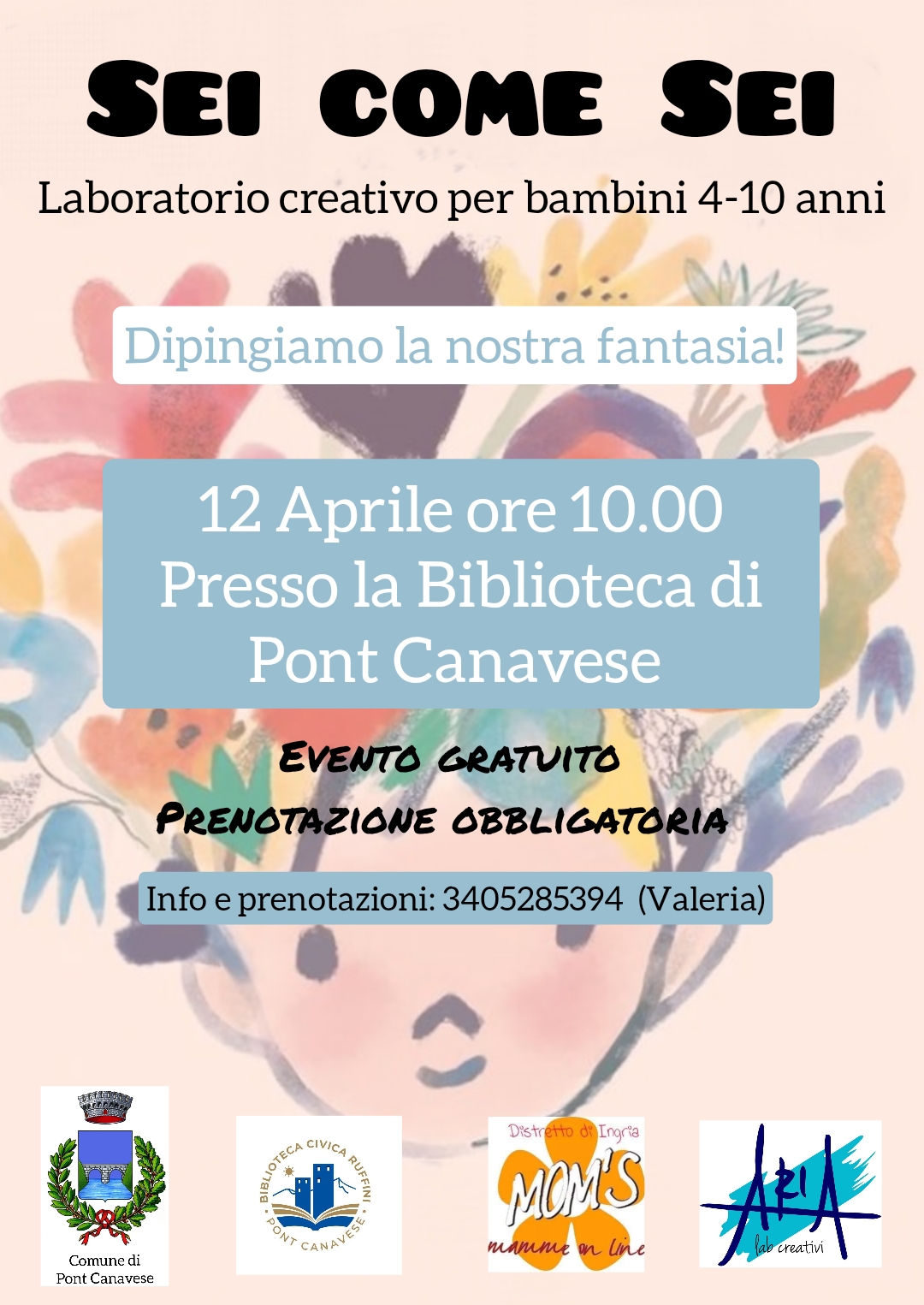 Laboratorio creativo per bambini dai 4 ai 10 anni, sabato 12 aprile 2025 ore 10:00, presso la Biblioteca di Pont Canavese.