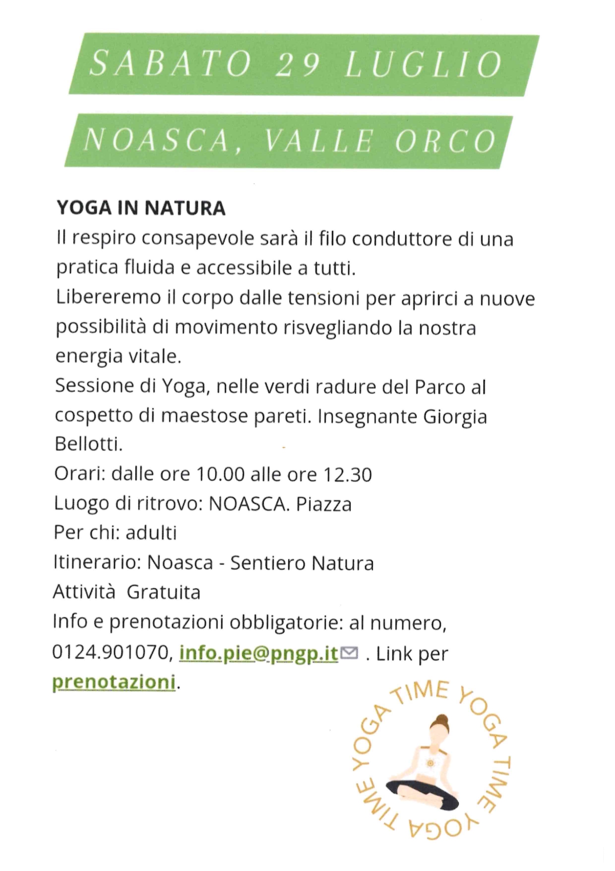Info e prenotazioni obbligatorie al numero 0124901070 o all'indirizzo mail info.pie@png.it
