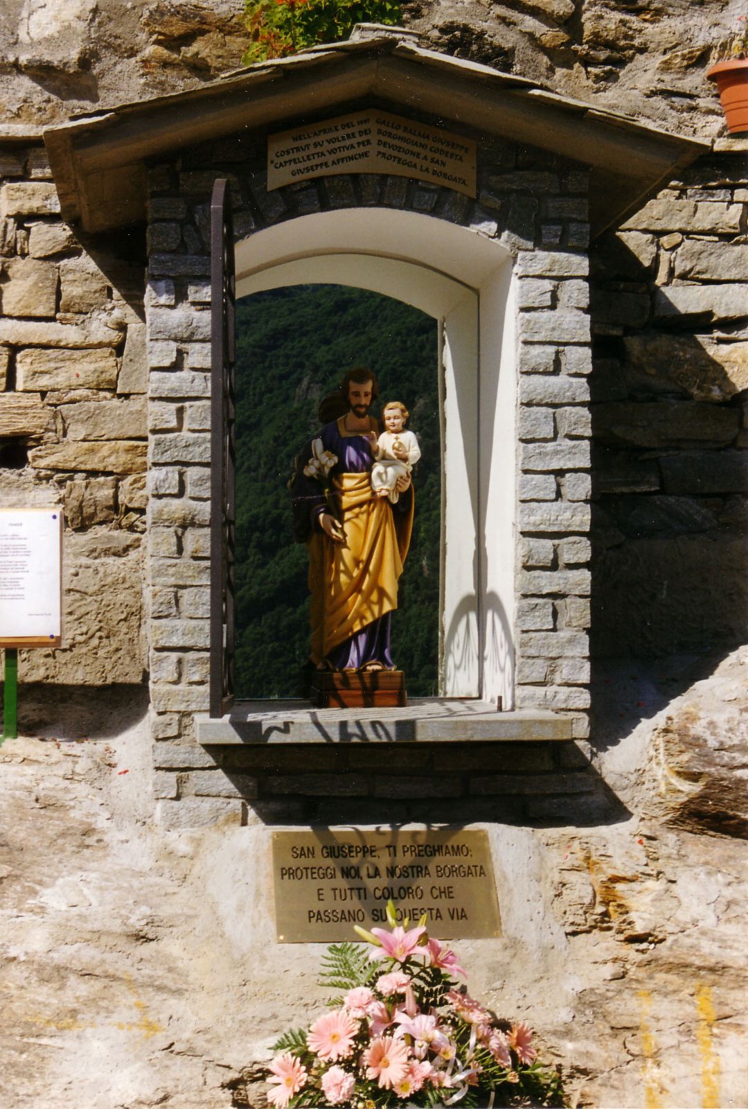 La borgata non ha una cappella però sulla piazzetta sorge un pilone votivo dedicato a S.Giuseppe.