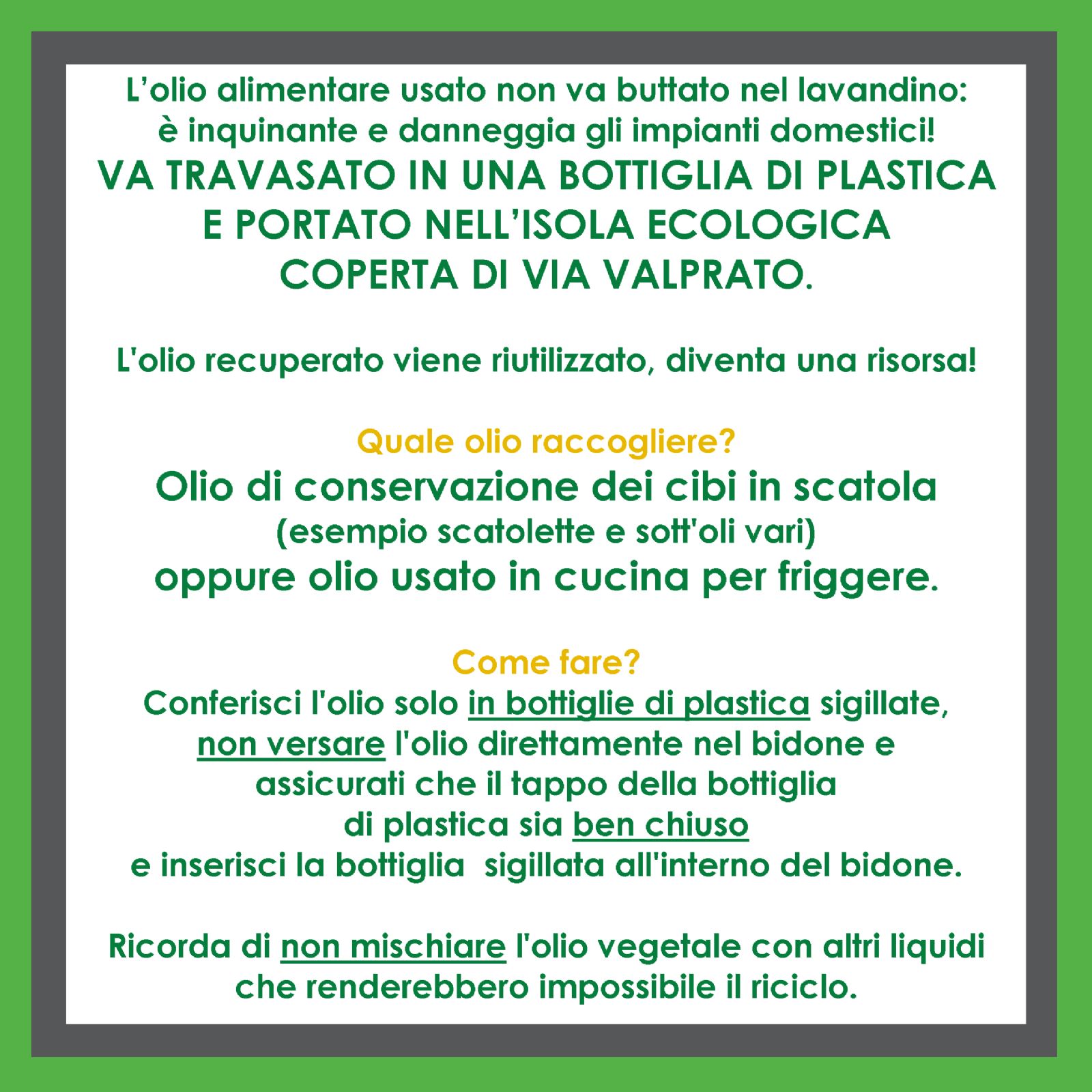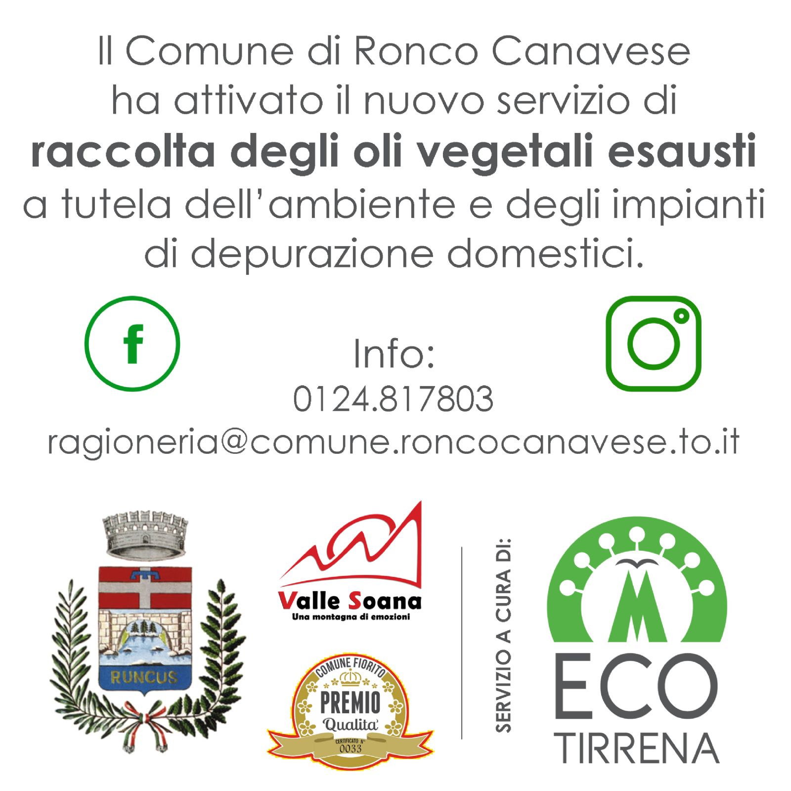 Ronco Canavese - RACCOLTA OLI VEGETALI ESAUSTI