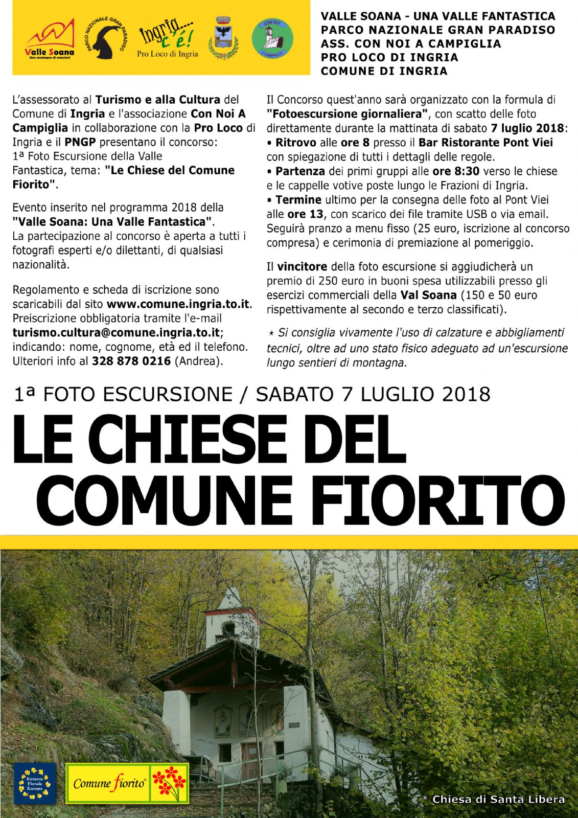Obiettivo turistico-culturale: valorizzazione dell'ambiente e del paesaggio fiorito di Una Valle Fantastica, unito alla tradizione architettonica delle Chiese e delle Parrocchie di Frazione, tramite una foto escursione mattutina che valorizzi le doti dinamiche ed artistiche dei partecipanti iscritti.