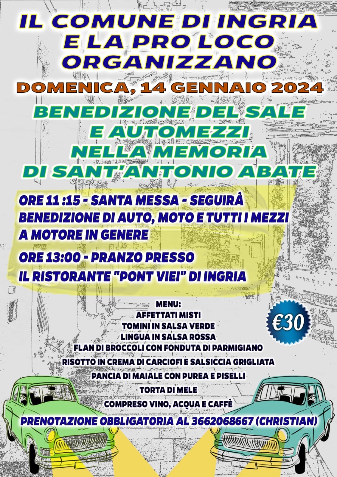Il Comune di Ingria e la Pro Loco di Ingria organizzano la consueta "Festa dei motorizzati" con benedizione dei mezzi e pranzo presso il ristorante "Pont Viei".
