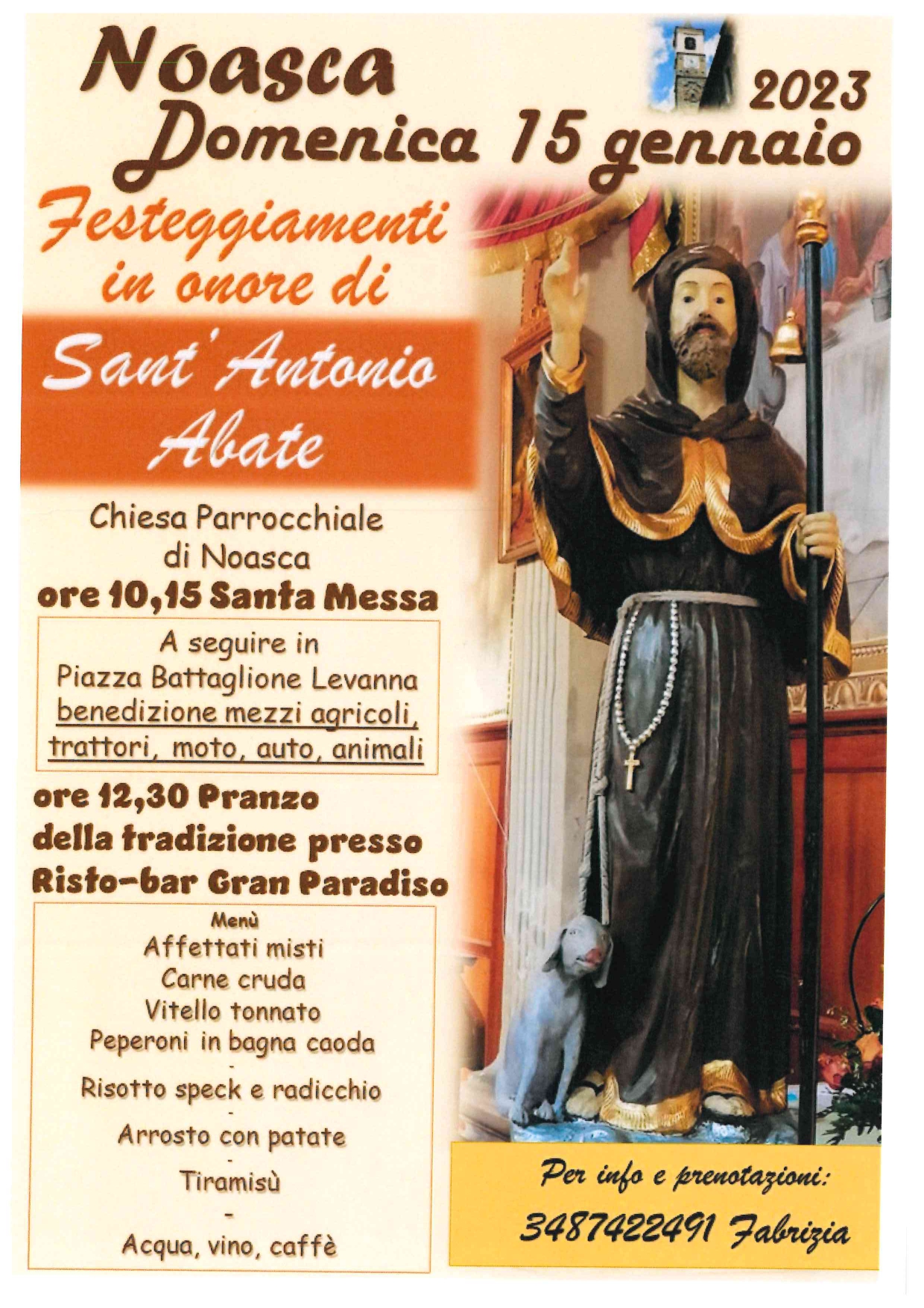 A seguire in Piazza Battaglione Levanna benedizione di mezzi agricoli, trattori, moto, auto e animali.