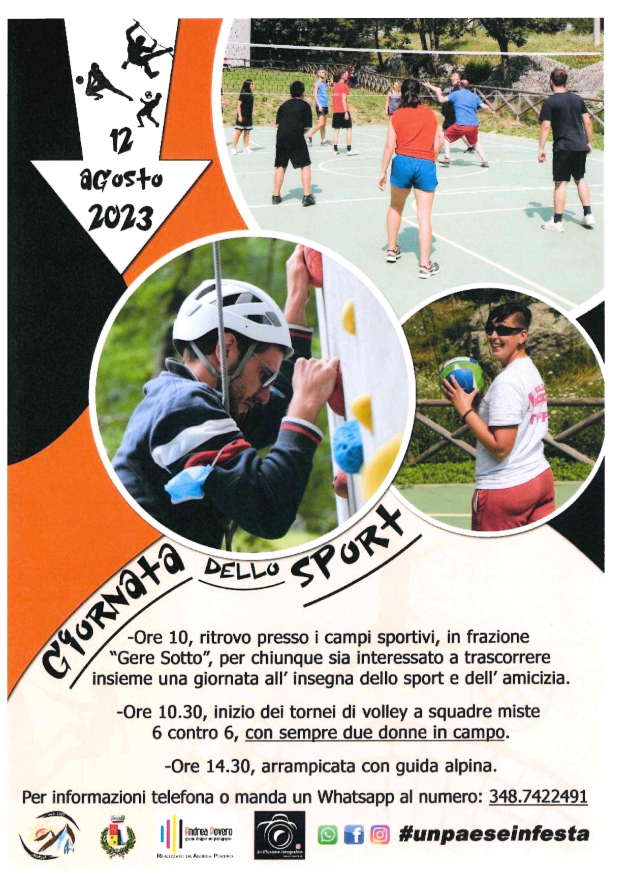 Ore 10 ritrovo presso i campi sportivi in frazione "Gere Sotto" per chiunque sia interessato a trascorrere insieme una giornata all'insegna dello sport e dell'amicizia.