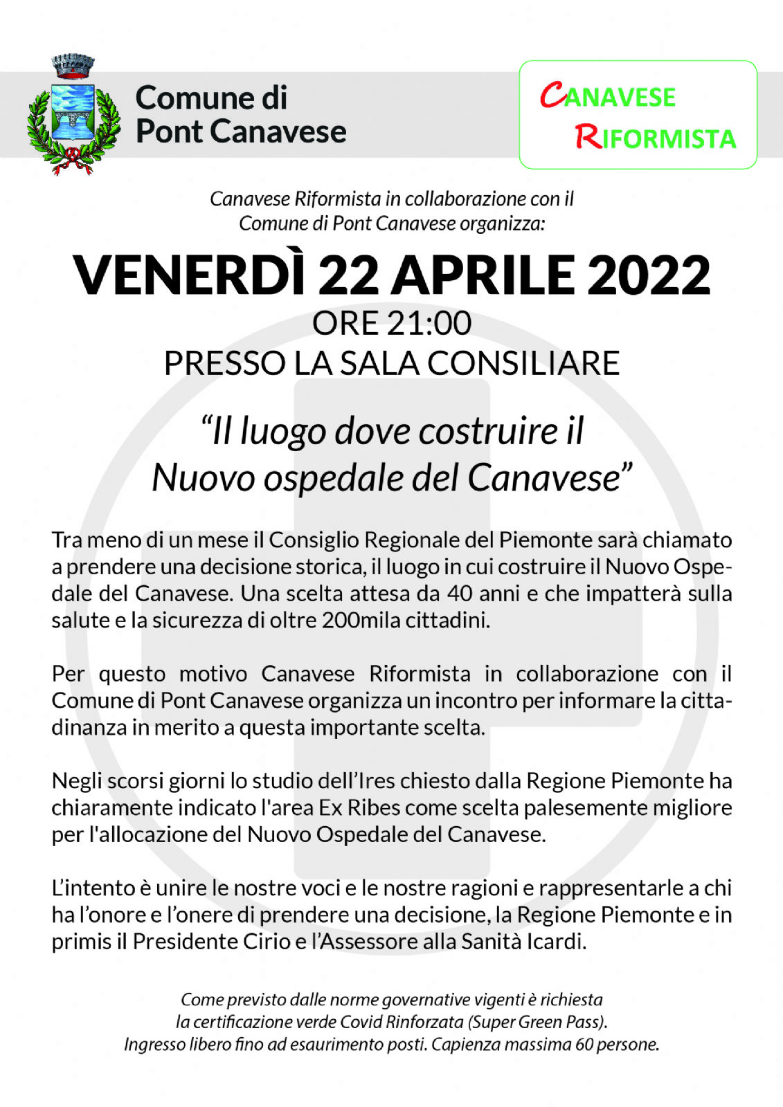Venerdì 22.04.2022 ore 21,00 presso la sala consiliare