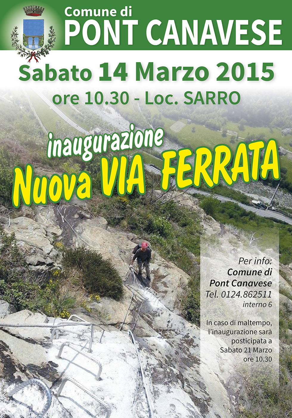 L’inaugurazione della nuova "Via Ferrata" è stata confermata per sabato 21 marzo 2015 alle ore 10,30.