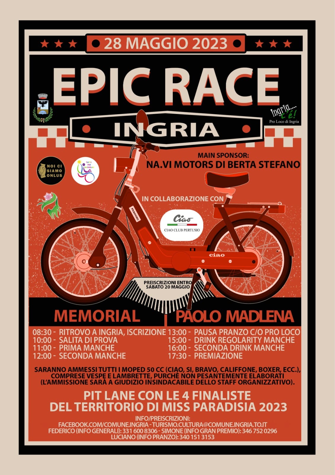 🗓 Domenica 28 maggio tutti gli appassionati dei mitici motorini d'epoca monomarcia (vespe comprese) sono convocati a Ingria per la quinta edizione dell'Epic Race!