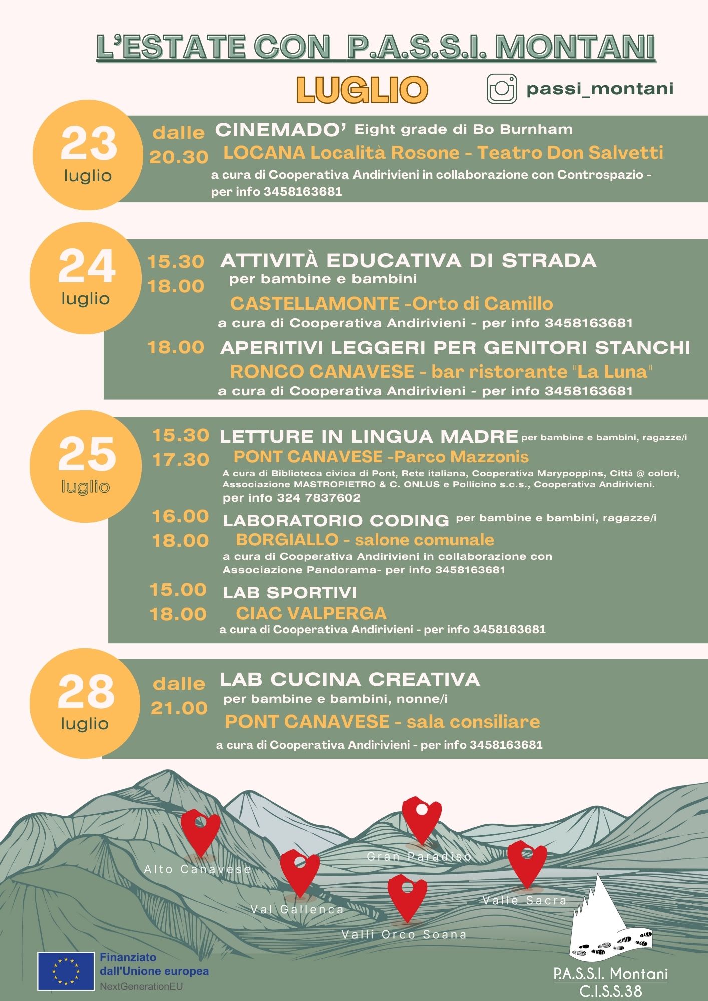 L'Estate con P.A.S.S.I. Montani - eventi di luglio destinati alle famiglie