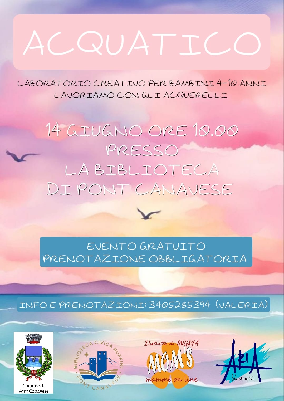 Si comunica che il laboratorio creativo previsto per sabato 14 giugno 2025 alle ore 10:00, presso la Biblioteca di Pont Canavese, è stato rimandato a data da destinarsi.