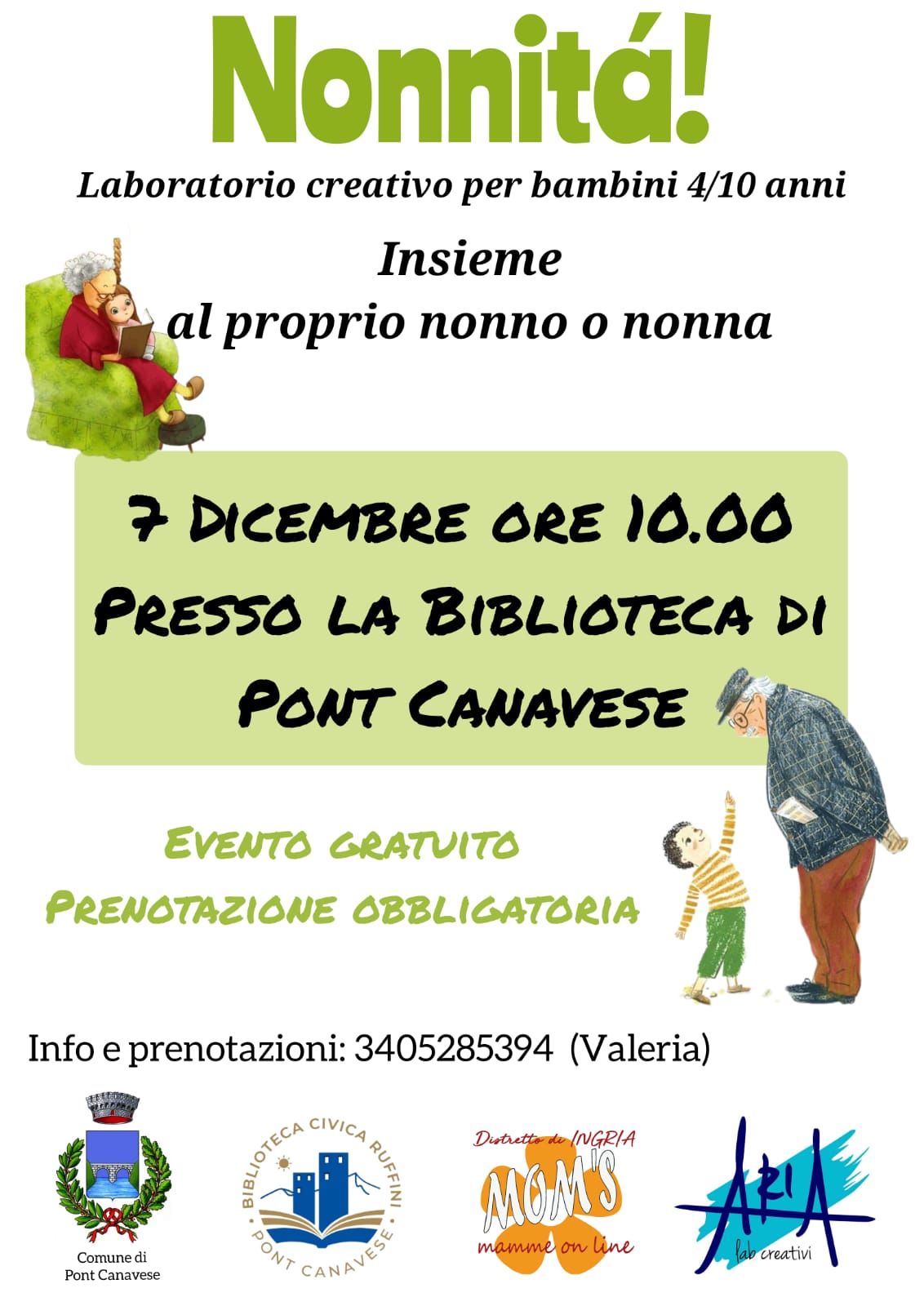 Laboratorio creativo per bambini dai 4 ai 10 anni, insieme al proprio nonno o nonna, sabato 7 dicembre 2024 ore 10:00, presso la Biblioteca di Pont Canavese.
