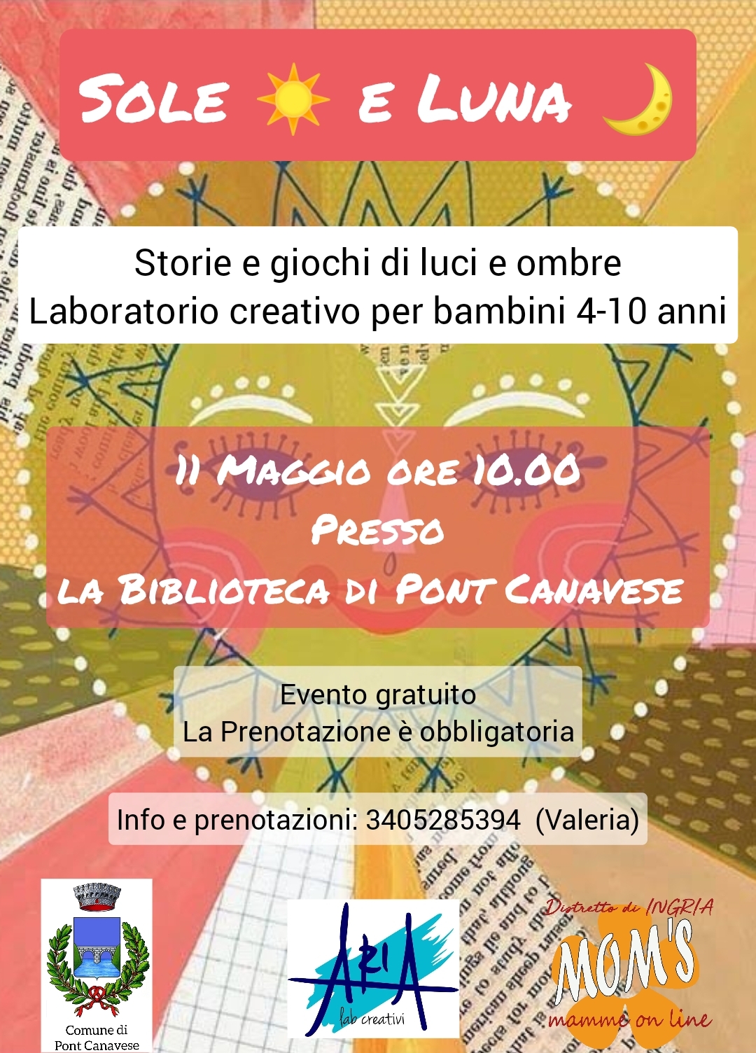 Laboratorio creativo, per bambini dai 4 ai 10 anni, sabato 11 maggio 2024 ore 10:00 presso la Biblioteca di Pont Canavese.