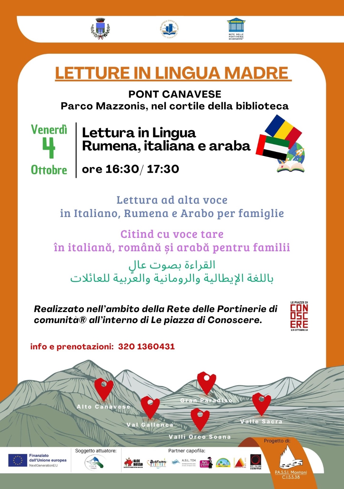 Letture ad alta voce per famiglie in lingua rumena, italiana e araba.