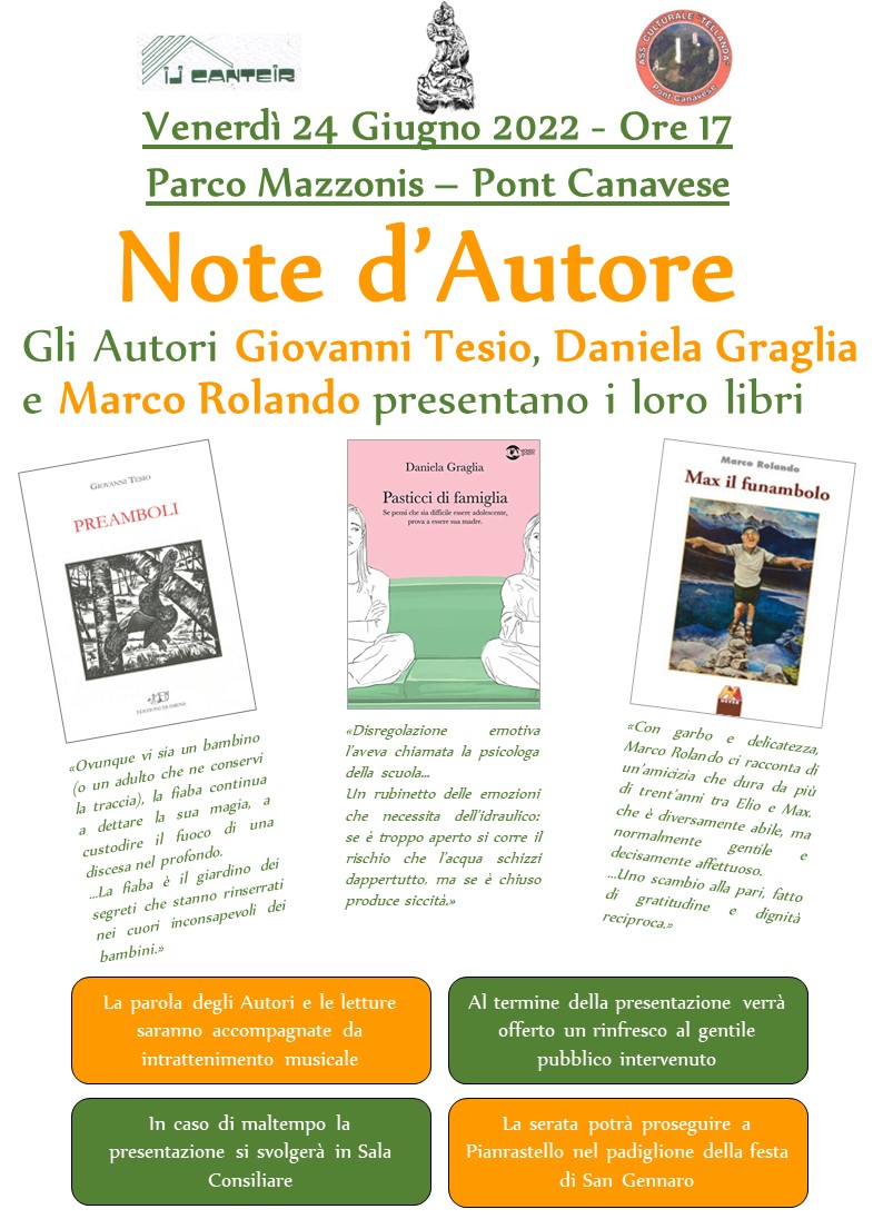 Incontro con gli autori presso il Parco Mazzonis dalle ore 17:00 del 24 giugno 2022