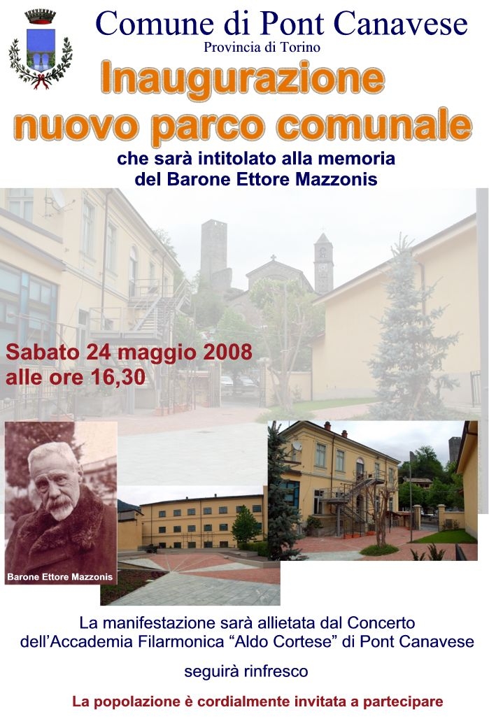 Sabato 24 maggio 2008 alle ore 16,30 è stato inaugurato il nuovo Parco Comunale che è stato intitolato alla memoria del Barone Ettore Mazzonis.
