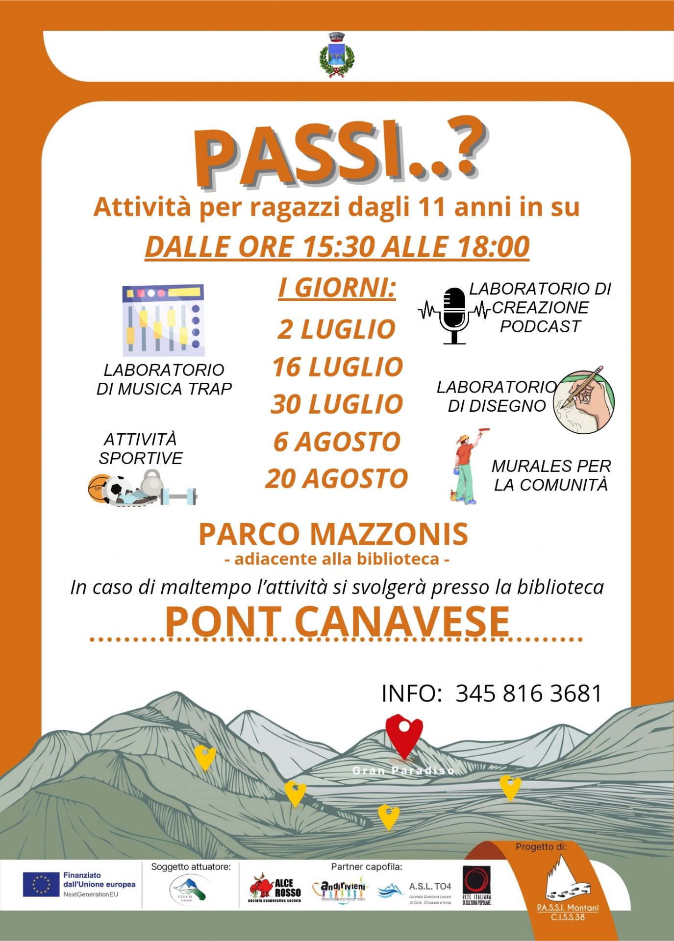 Attività per ragazzi dagli 11 anni in su, dalle 15.30 alle 18.30, presso il Parco Mazzonis di Pont Canavese.