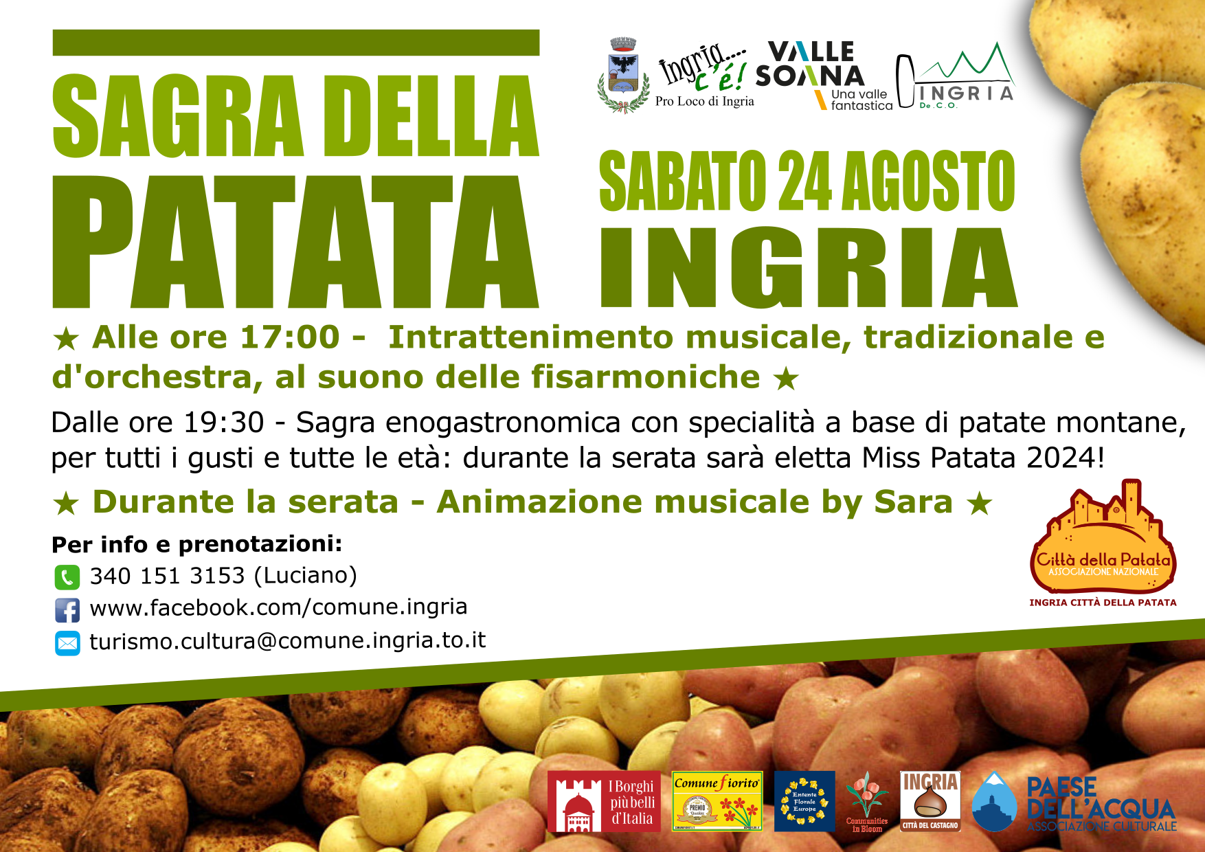 👧 Durante la serata ci sarà l'elezione della Miss... senza età: Miss Patata 2024 (dai 18 ai 99 anni).